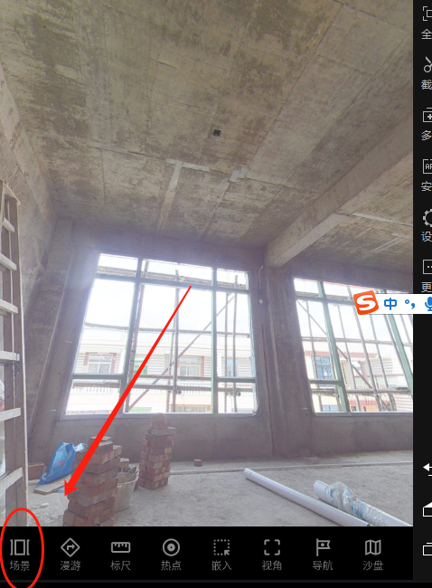 第一次上传有限制,无法全部上传!第一批照片上传后,进入编辑全景状态,如下图: 可以看到截图中,有个圈圈,菜单是...